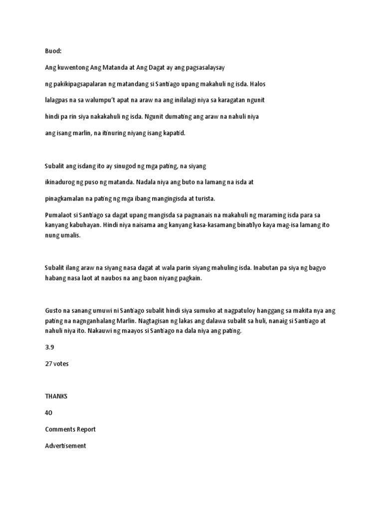 Ang Matanda At Ang Dagat Docx Pdfcoffee Com