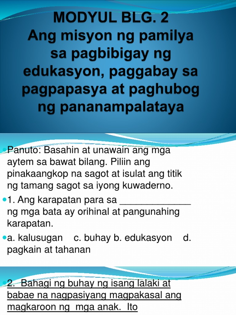 Modyul 2 Ang Misyon Ng Pamilya Sa Pagbibigay Ng By Shaina Joson