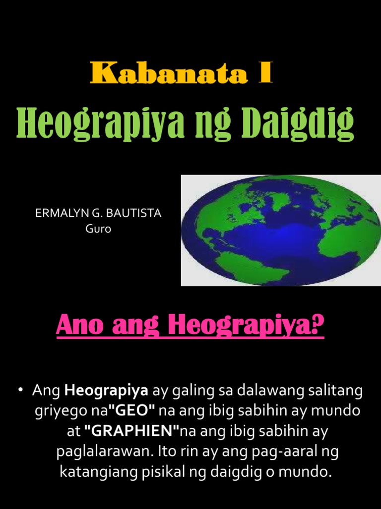 Ano ang ibig sabihin ng Heograpiya Who is the voice behind the text. Kapag pinagsama natin ang dalawang salitang ito ang literal na kahulugan ng salita ay ang paglalarawan. Geography mula sa Griyego γεωγραφία geographia literal na kahulugan.