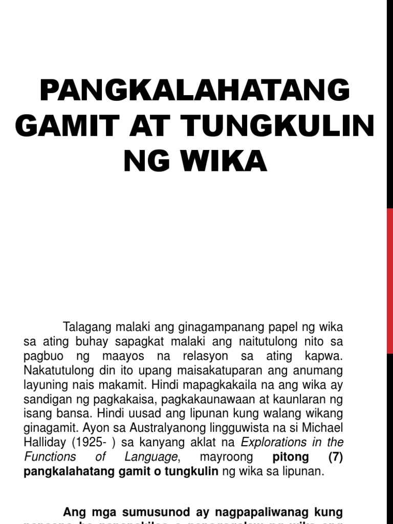 Pangkalaahatang Gamit At Tungkulin Ng Wika