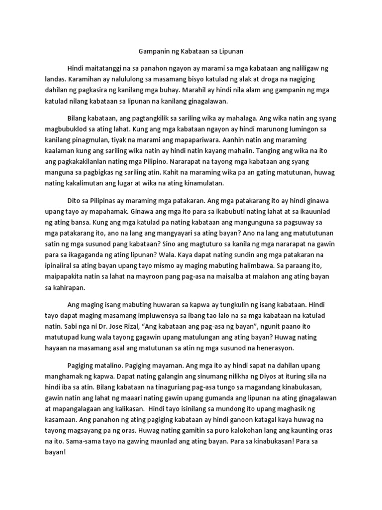Gampanin Ng Kabataan Sa Lipunan